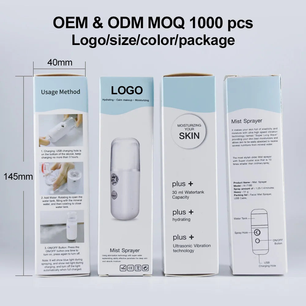 Portable Rechargeable Small Facial Steamer 30ml Mini Humidifier Home Wireless Nano Personal Face Hydrat Sprayer Cool Mist Maker